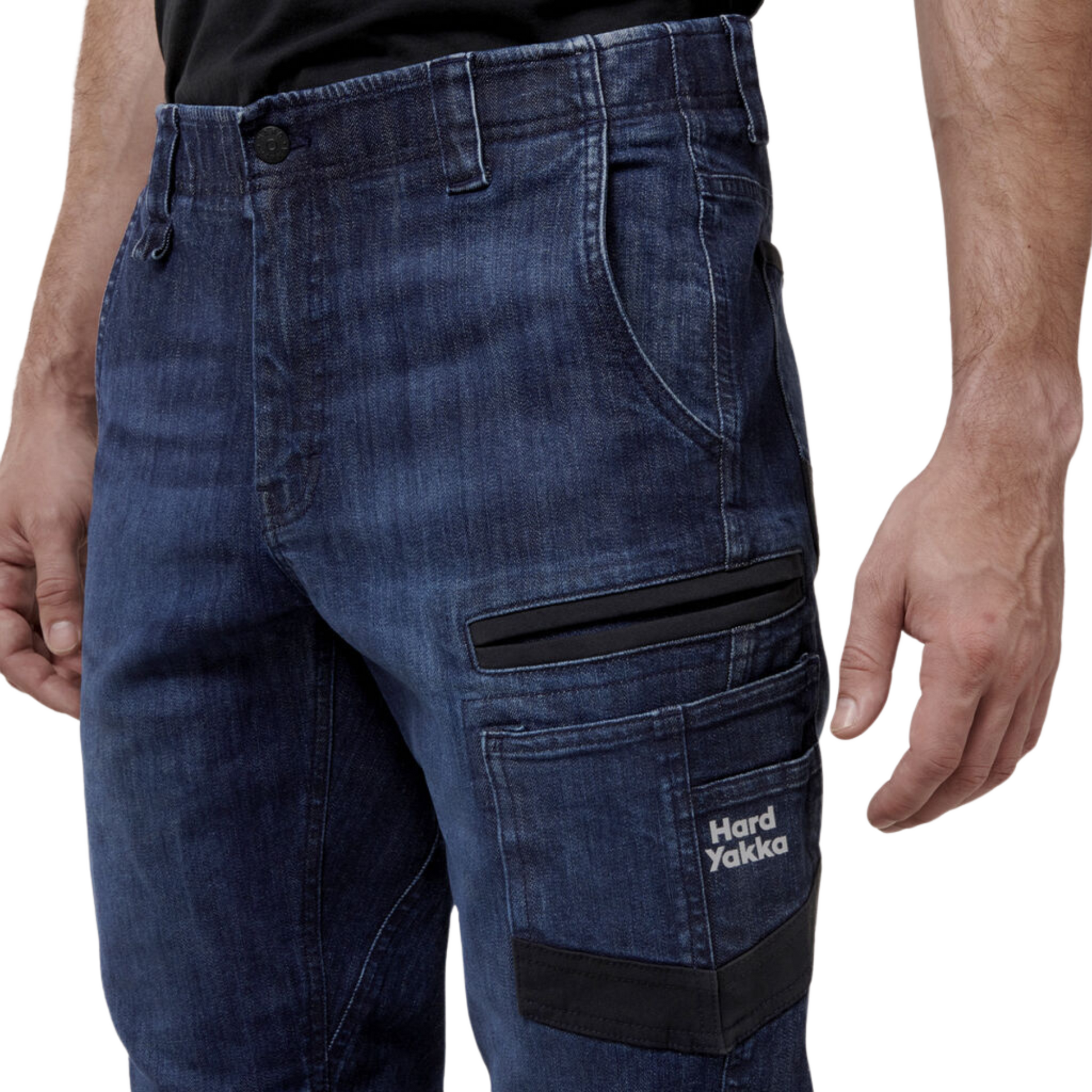 Hard Yakka Men's Raptor Cuffed Denim Jean - Dark Indigo
