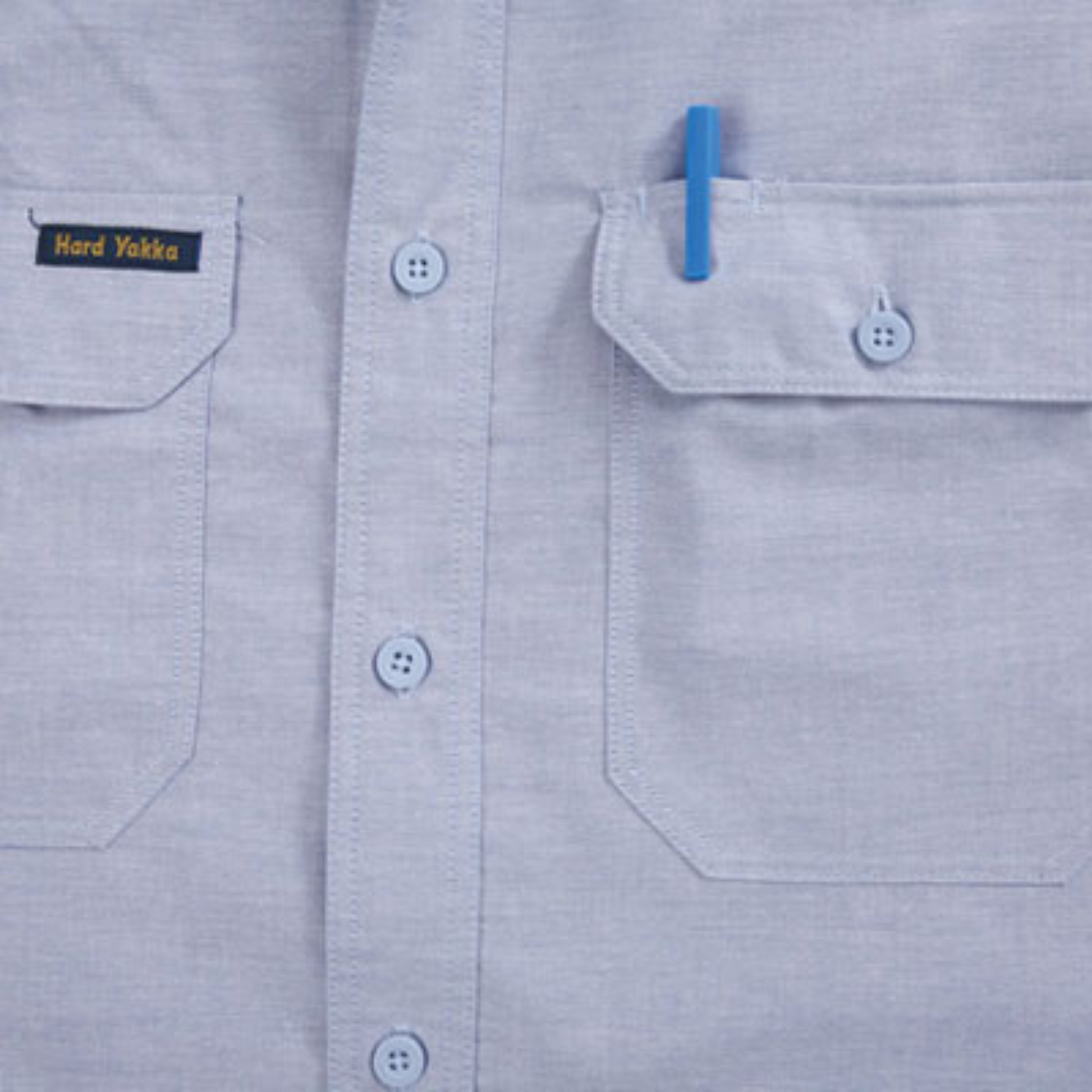 Hard Yakka Men's Short Sleeve Chambray Open Front Cotton Work Shirt - Chambray