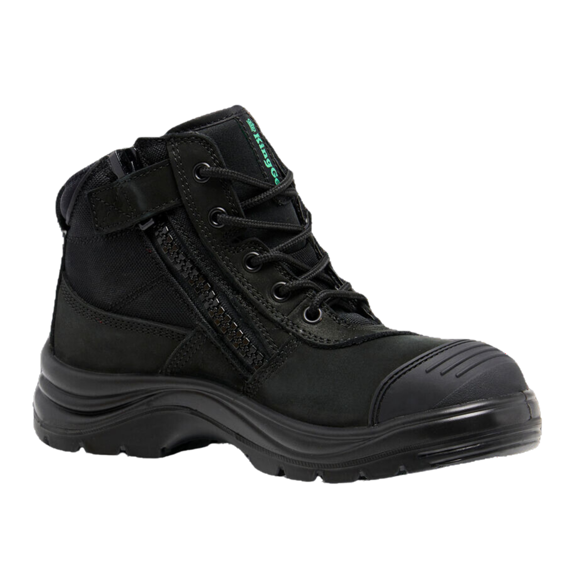 KingGee Women's Tradie Zip/Lace Steel Cap Work Boots 5" - Black