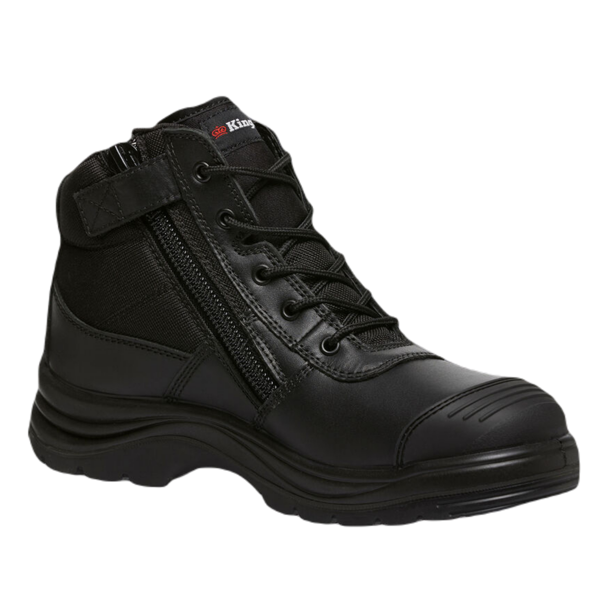 KingGee Men's Tradie Zip/Lace Steel Cap Safety Work Boots 5" - Black