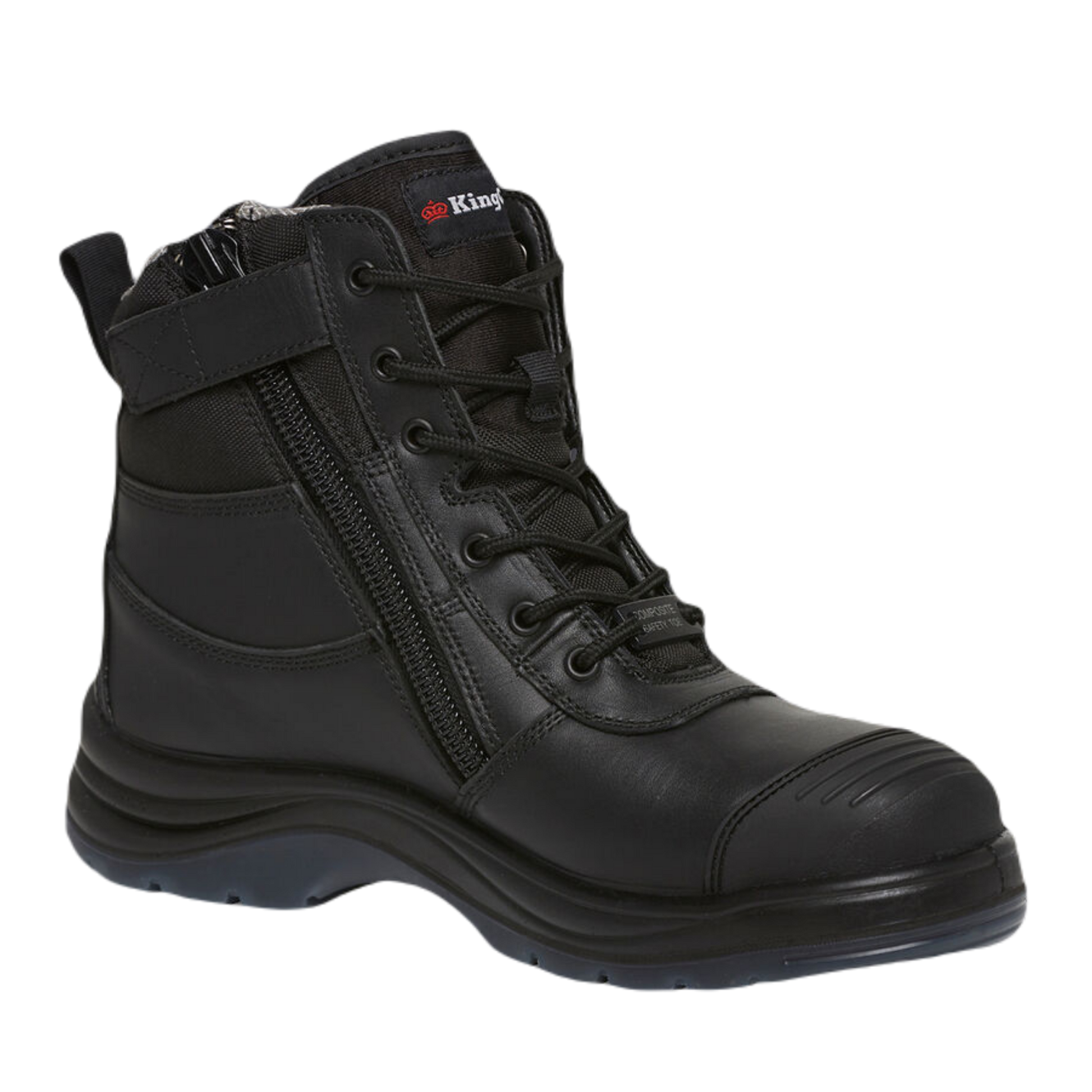 KingGee Men's Tradie Zip/Lace Composite Safety Work Boots 6" - Black