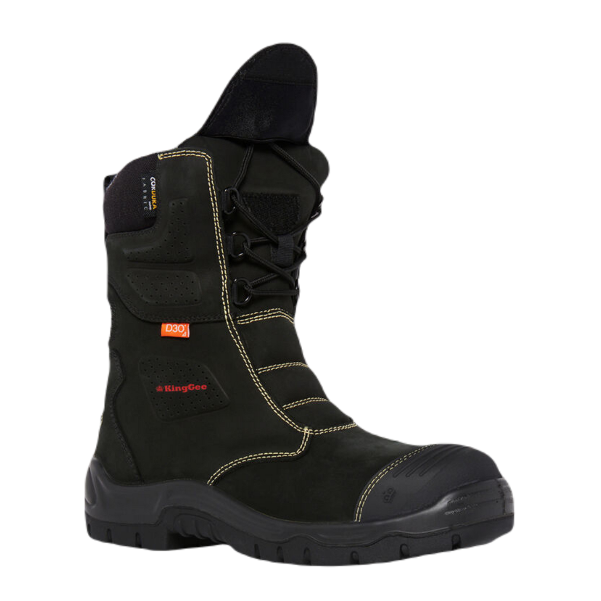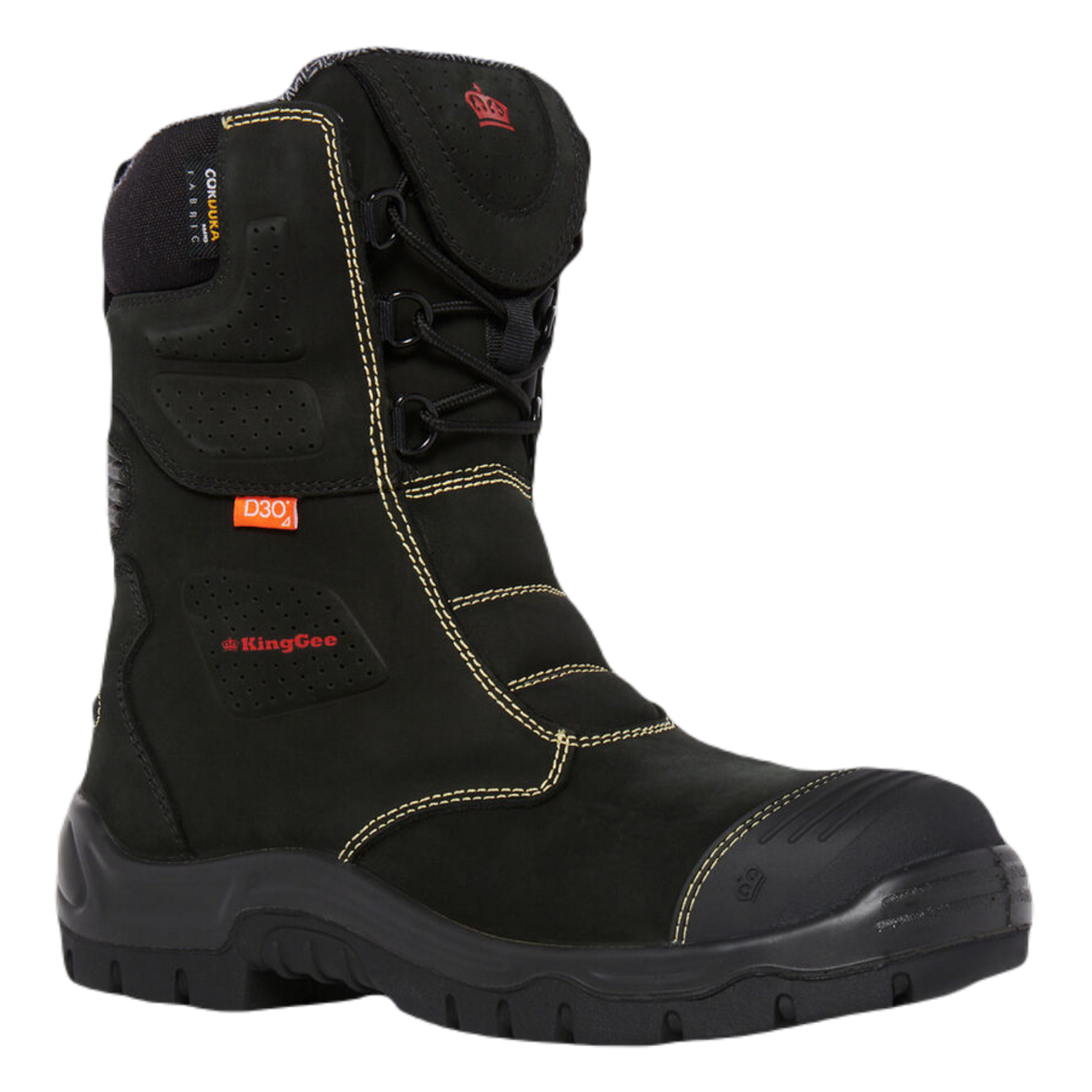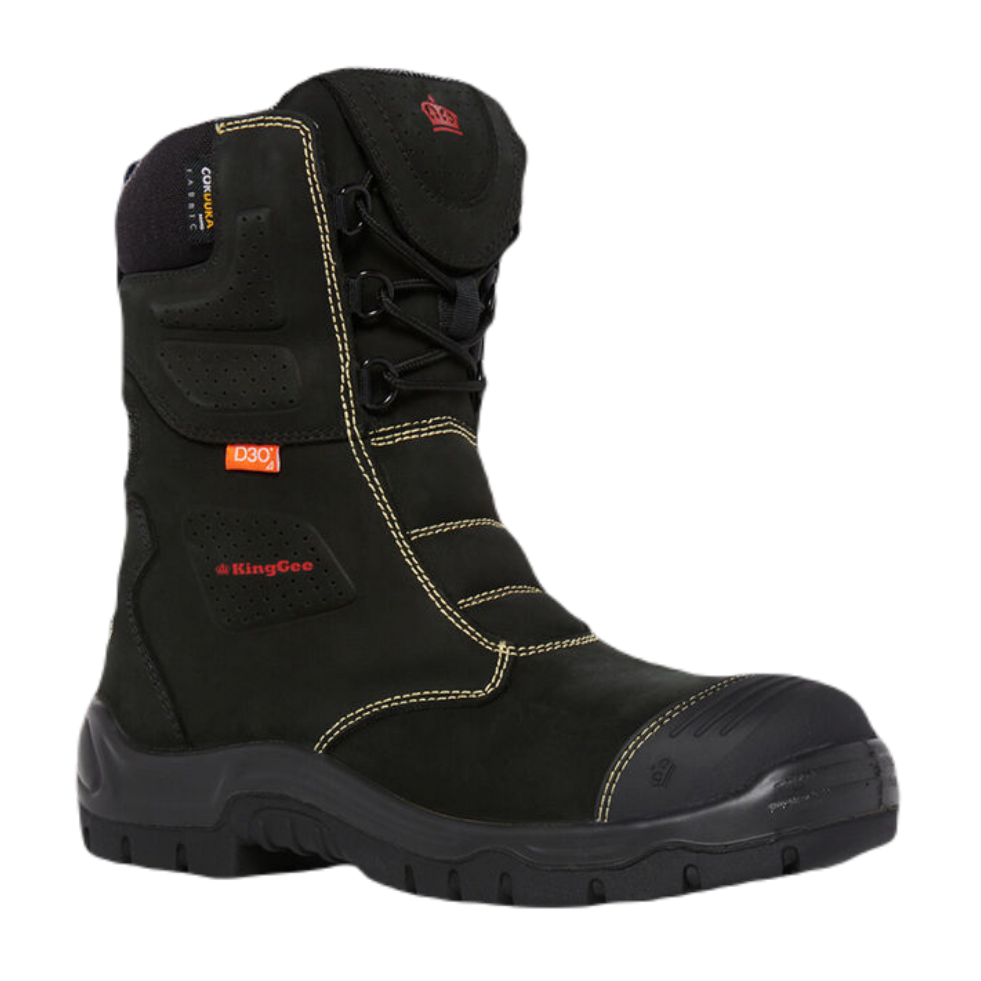 Ensure your feet remain unscathed in the rough-and-tumble of everyday work with KingGee's Bennu Rigger 9" boot, featuring Kevlar® stitching in key stress zones for additional protection against heat, sparks & abrasion, unique Achilles and front flexing zones and an underfoot phylon interlayer, Bennu is tough without compromising on comfort. Ideal for heavy industrial.