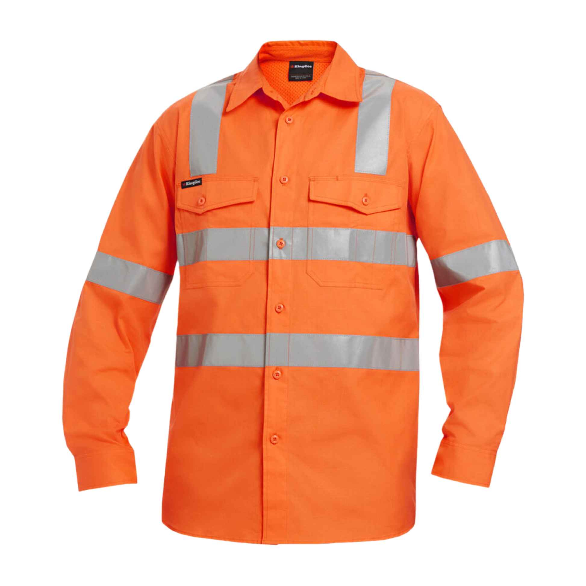 KingGee Men's Workcool 2 Hi-Vis Reflective X Back Work Shirt - Orange