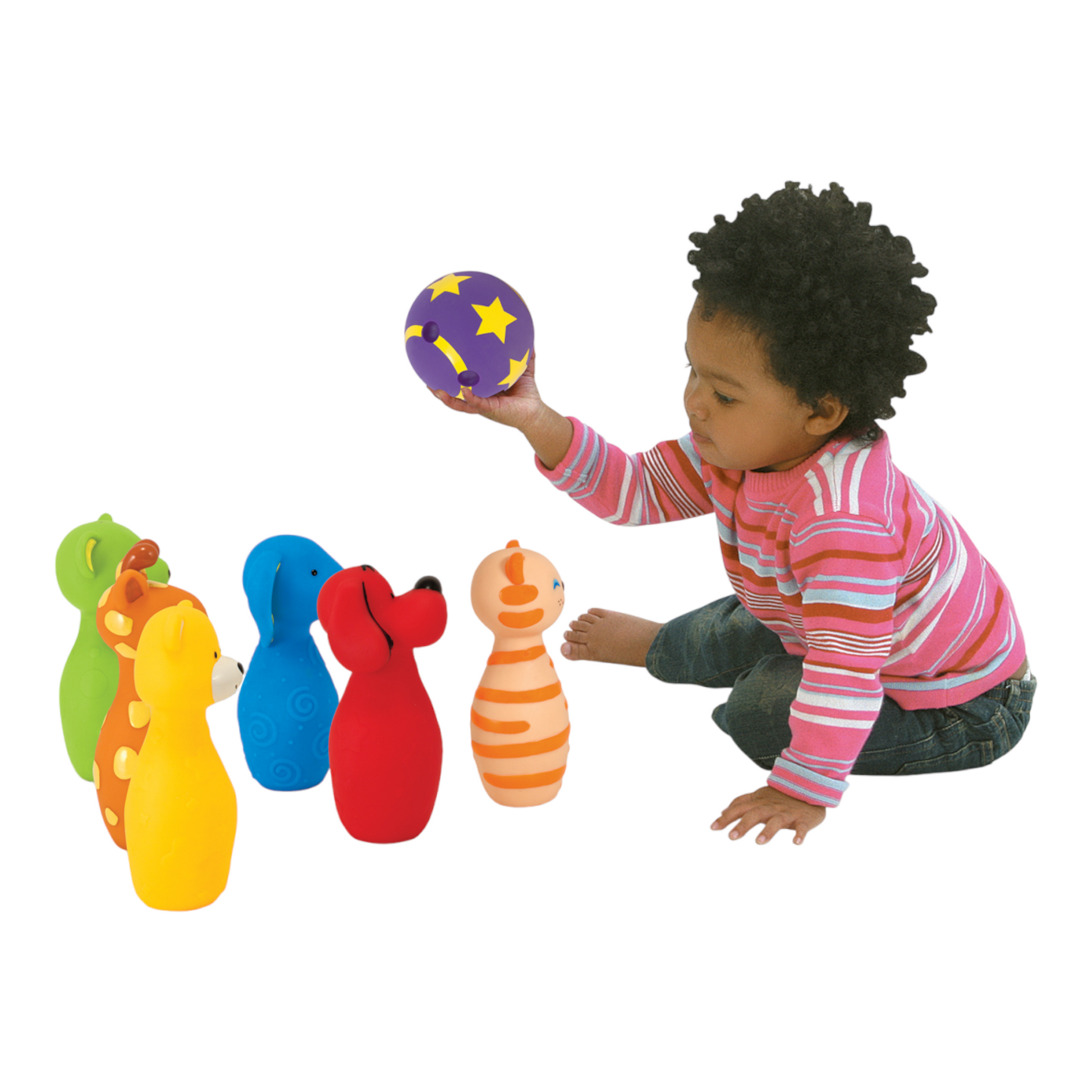 This preschool-friendly bowling set has soft plastic components that are easy to lift, easy to manoeuvre and so much fun to knock down! Six unique character pins feature bright colours, raised textures, and sweet facial expressions to encourage little bowlers. Set them up indoors and out--young children will have a blast finding new ways to knock them down! With bright colours, textures, and adorable facial expressions, these endearing toys are sure to strike big at playtime. Melissa & Doug K's Kids toys nurture early childhood development in three key skill areas: physical, cognitive, and social. With interactive designs and multisensory features, K's Kids promotes constructive play and effortless learning, keeping interest high and new skills flourishing throughout the baby and toddler years!